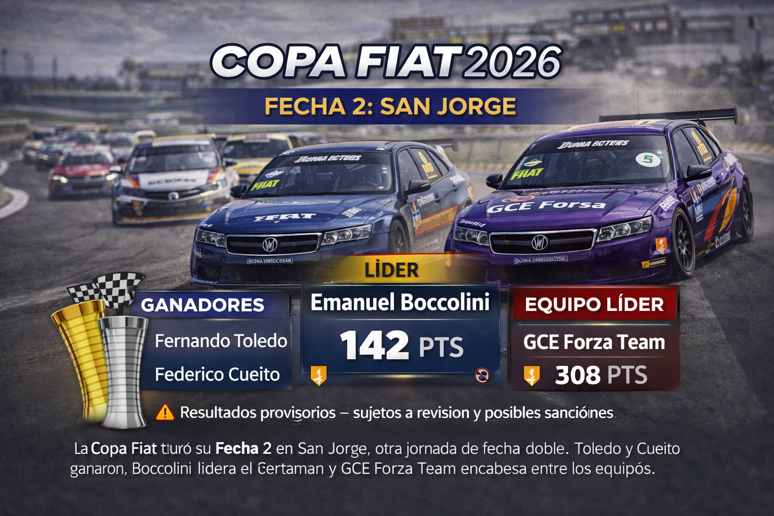 La Copa Fiat 2026 disputó su Fecha 2 en San Jorge bajo formato de fecha doble, con dos carreras intensas…